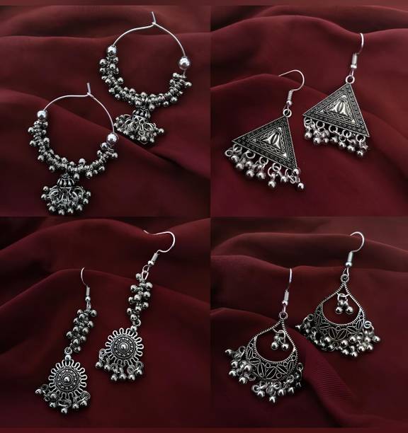 • Oxidised Silver Jhumkas: Known for their rustic, dark, and bohemian charm. They are extremely versatile and pair well with both ethnic and Indo-Western outfits.
