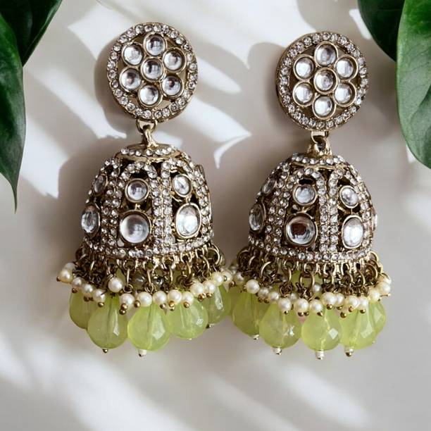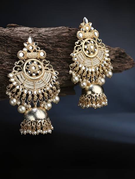 • Kundan & Polki Jhumkas: These feature intricate stone settings, giving a regal, vintage, and luxurious look, often seen at weddings.