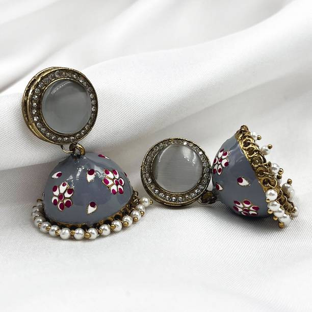 • Meenakari Jhumkas: These are known for their vibrant, colourful enamel work, adding a pop of colour and traditional artistry.